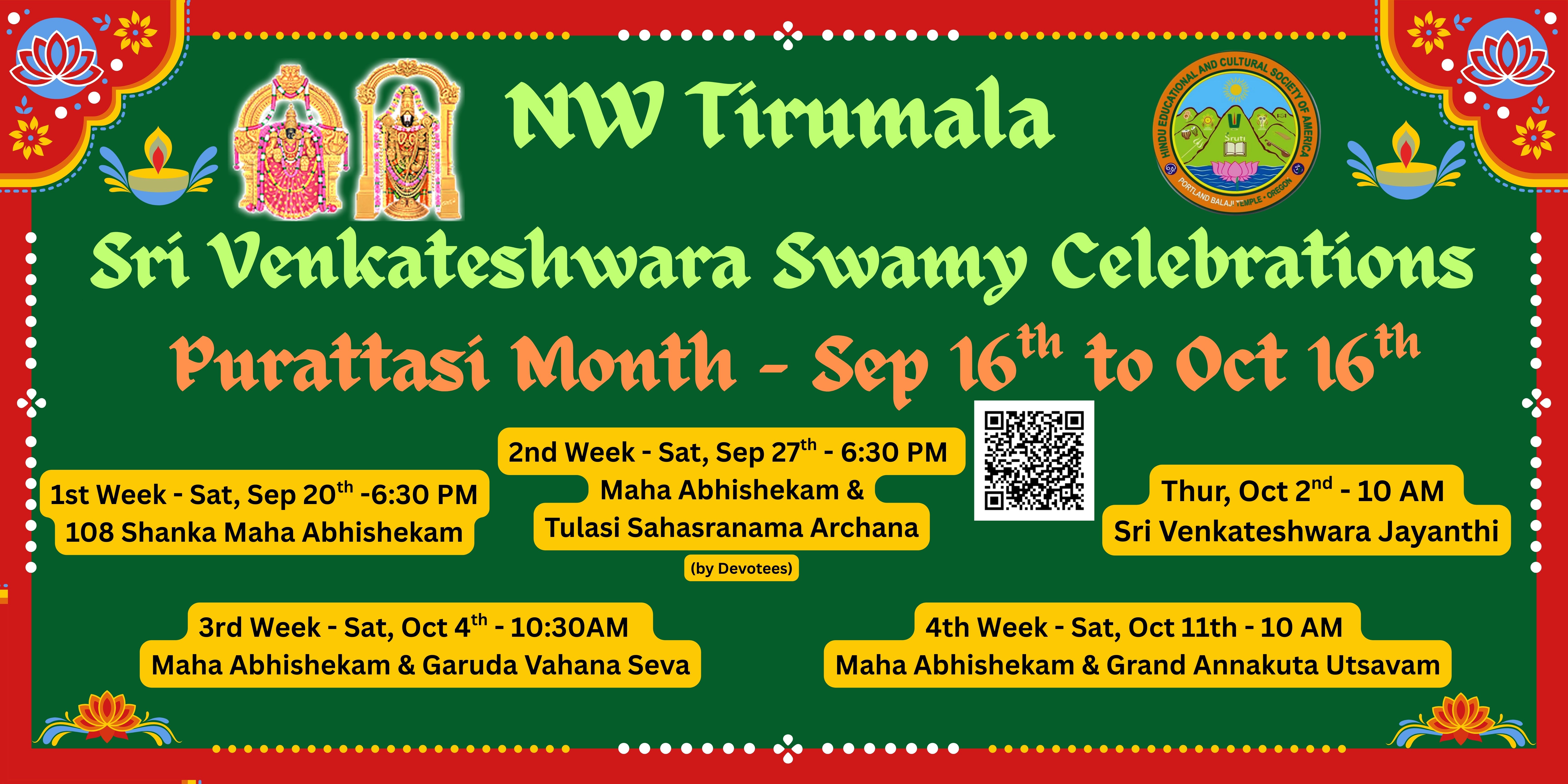 The Portland Balaji Temple is honoured and blessed to offer the Thiruppavada (Annakutotsavam) Seva to Lord Balaji for the devotees.